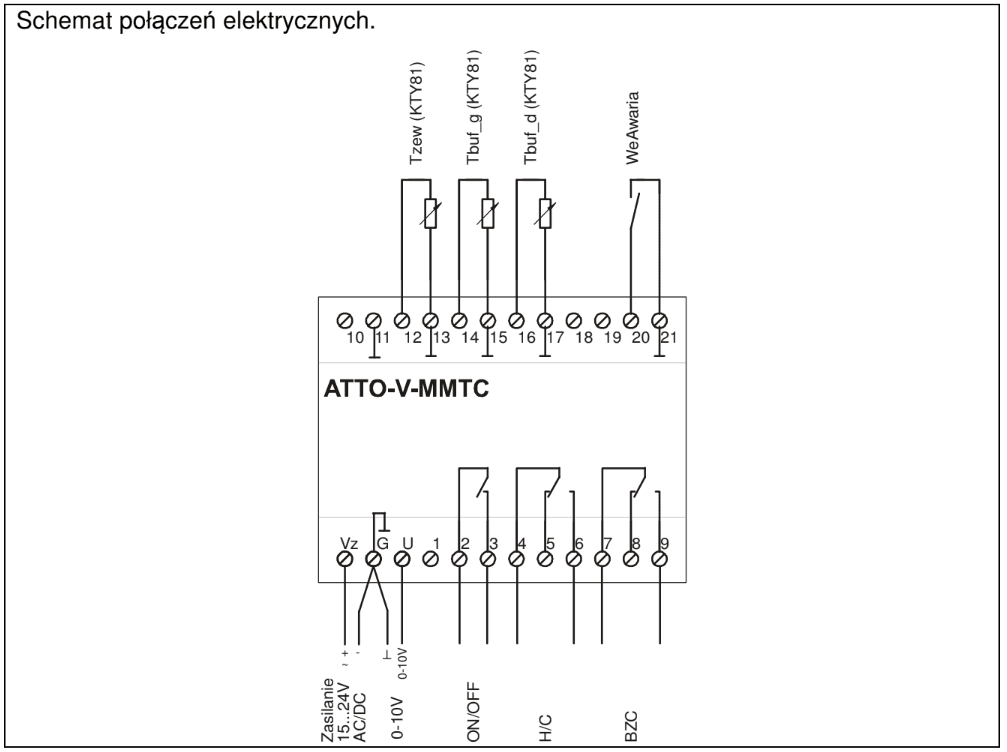 Sterownik pompy ciepła De Dietrich MMTC. Przeznaczony do sterowania pracą instalacji wyposażonej w bufor CO/AC. Tryb pracy CO/AC wybierany jest ręcznie lub za pomocą systemu BMS. W trybie grzania temperatura bufora regulowana jest pogodowo, korzystając z wybranej krzywej grzewczej lub ręcznie z zadaną wartością. W trybie chłodzenia temperaturę bufora ustawia się ręcznie. Regulator ma możliwość załączenia drugiego źródła ciepła, kiedy wydajność pompy jest za mała, lub pompa uległa awarii. Dostępne są dwie temperatury pracy: obniżona i komfortowa. Wybór zadanej temperatury realizowany jest w oparciu o program tygodniowy. Dla każdego dnia tygodnia zadeklarować można trzy przedziały czasowe z wybraną temperaturą komfortową.